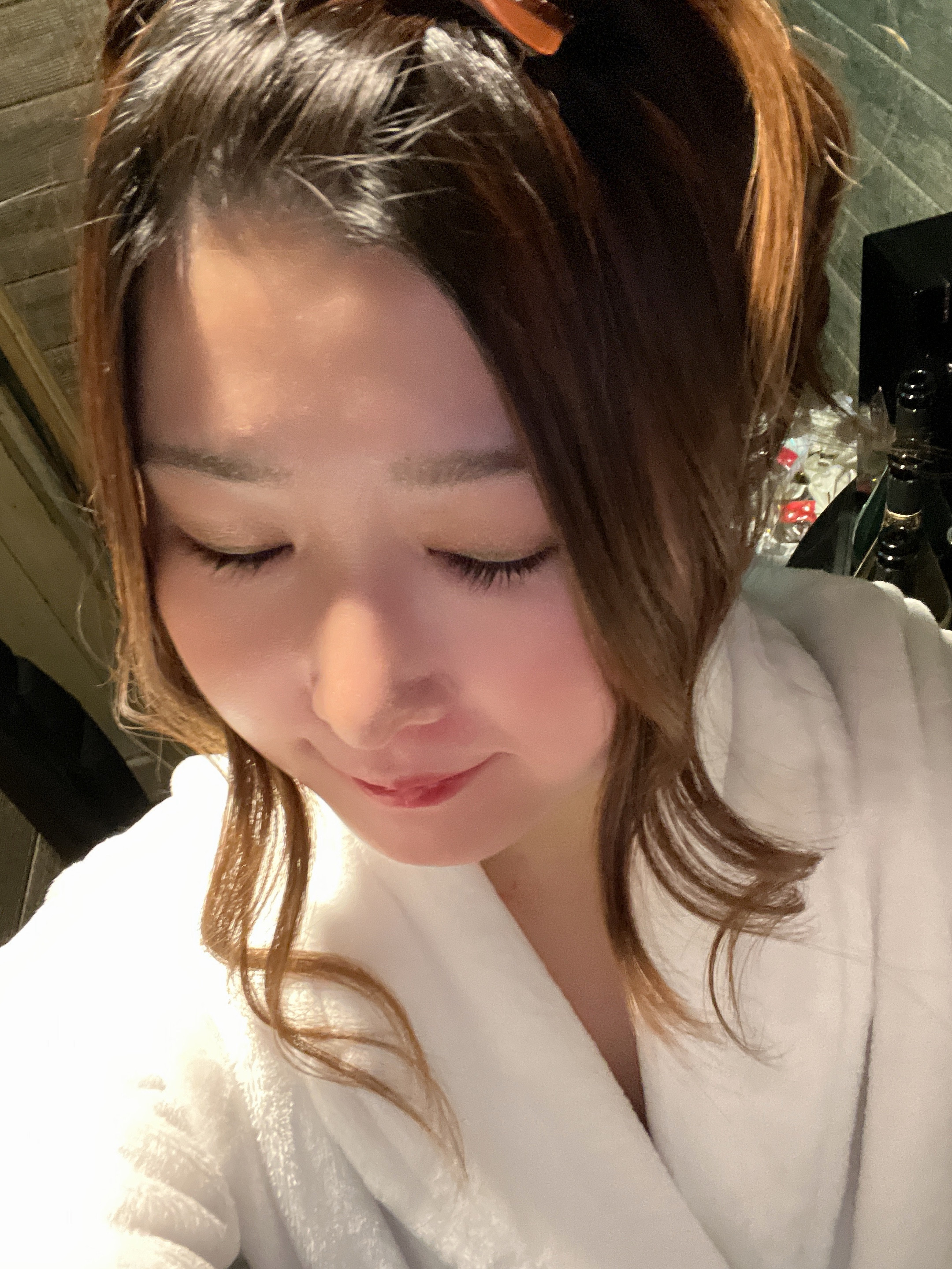 今日のバスローブは真っ白だぜぇー!